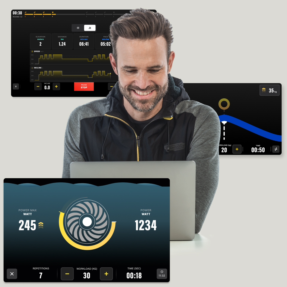 Упрощённый процесс адптации, умное оборудование, которое знакомит вас с программой, регулирует настройки и положение сиденья, два круговых раунда быстрее и надежнее приведут к результатам.
